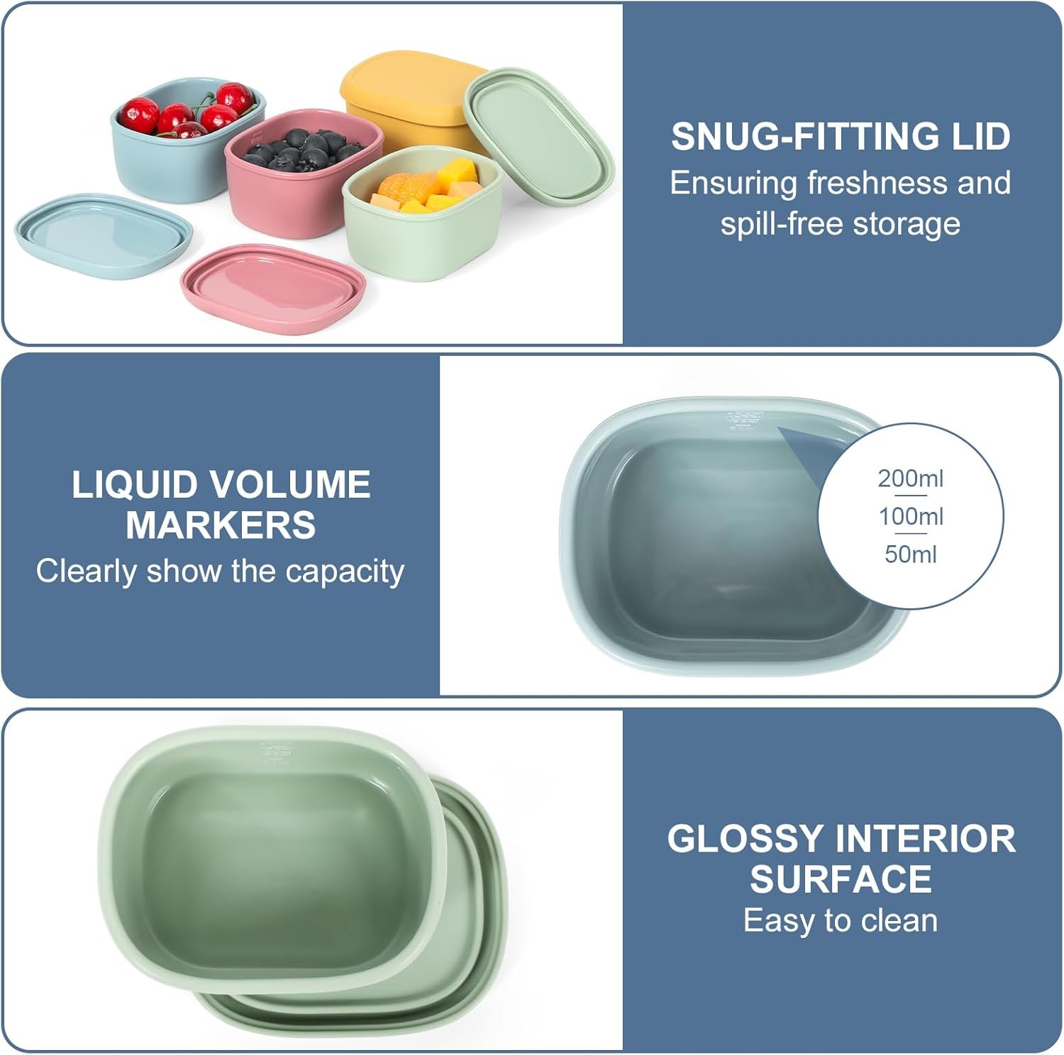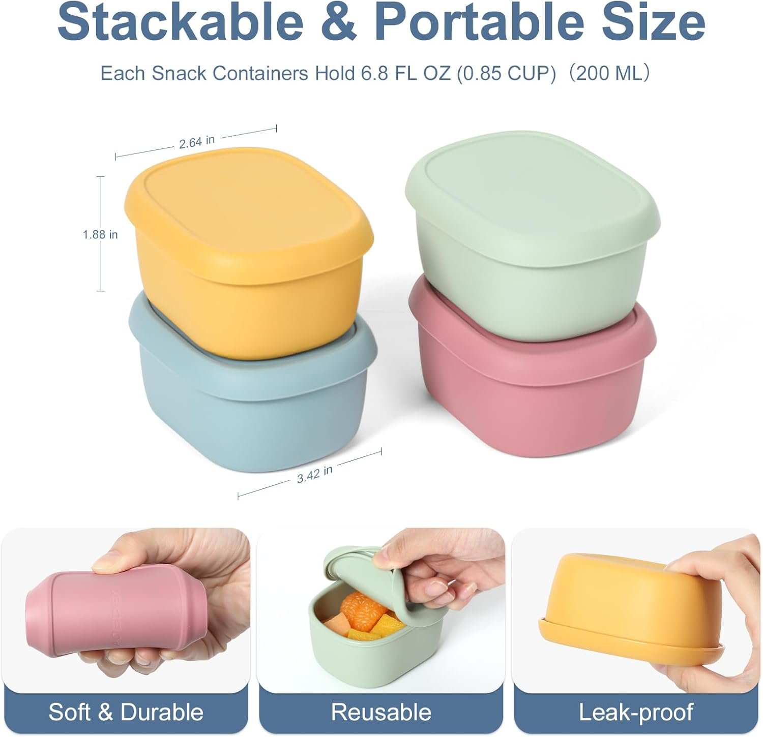 - Quality Material: Your safety comes first. snack containers are crafted from high-quality, food-grade silicone, ensuring both durability and safety. BPA-free and reusable, these containers are an economical and eco-friendly. These reusable containers are not only safe for microwave, dishwasher. (The temperature range is -40 ℃ to 230 ℃. ).